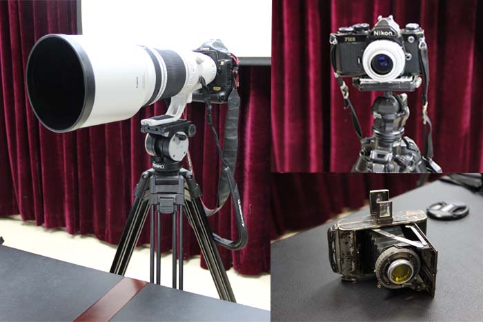 當(dāng)天,張正賢老師為了讓現(xiàn)場(chǎng)營(yíng)造出濃厚的學(xué)習(xí)氣氛,提前布置會(huì)場(chǎng),將伴隨自己多年的各類攝影器材以及經(jīng)典攝影作品整齊羅列在會(huì)場(chǎng)中,讓提前到場(chǎng)的青年們率先感受攝影的魅力。