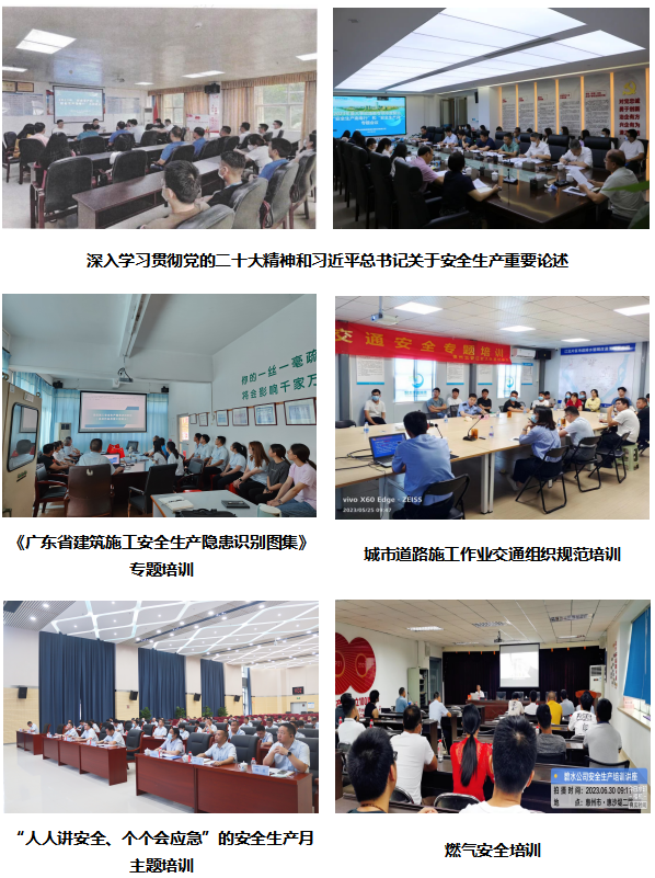 5月,集團(tuán)制定《惠州市水務(wù)集團(tuán)2023年“安全生產(chǎn)月”和“安全生產(chǎn)南粵行”活動(dòng)方案》,從宣傳教育、應(yīng)急演練、隱患排查、安全知識(shí)競(jìng)賽等各方面開(kāi)展活動(dòng)。同時(shí),集團(tuán)召開(kāi)重大事故隱患專項(xiàng)排查整治2023行動(dòng)工作部署會(huì),做好部署,要求全面徹查事故隱患,切斷事故演變鏈條。