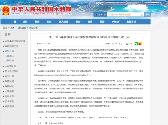 近日,水利部2025年度水利工程質(zhì)量檢測(cè)單位甲級(jí)資質(zhì)認(rèn)定評(píng)審結(jié)果公示,惠州水務(wù)集團(tuán)下屬大禹檢測(cè)公司、東江檢測(cè)公司雙雙傳來(lái)捷報(bào),資質(zhì)建設(shè)實(shí)現(xiàn)里程碑式突破。